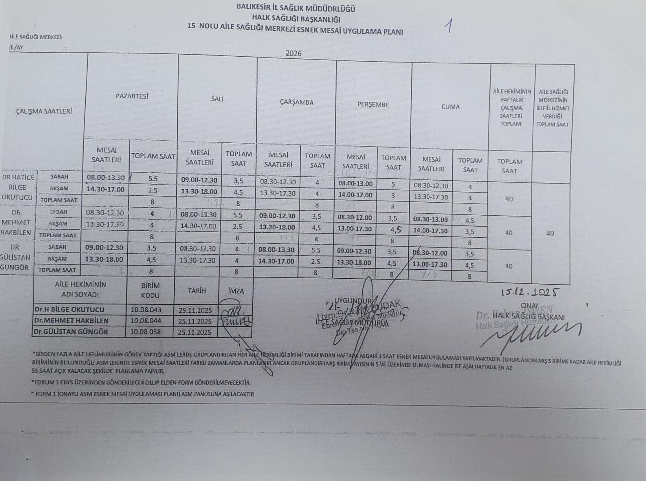- Pazartesi : 08:00-13.30/14:30-17:00